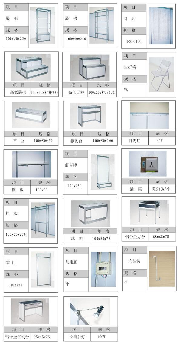 备注:以上展具只提供给标准展位租凭,特装展位恕不租凭。